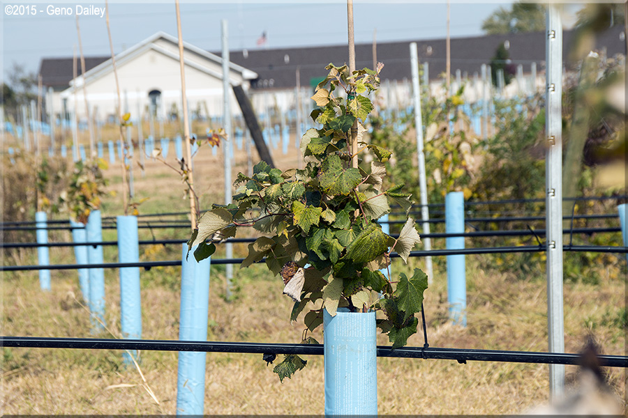 Trying a little "artistic" photography showing one of the many grape vines using a larger aperture so the entire background is out of focus. |
