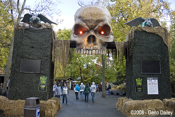 OK, if that skull don't scare you, I don't know what will!!! You'll see this at the back entrance of the Fright Zone!!! |