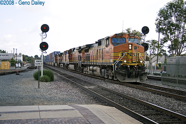 One of the many dozens of BNSF freights that pass by Fullerton each day. |