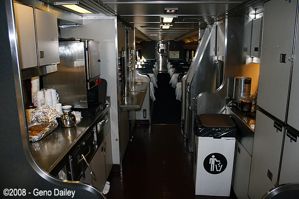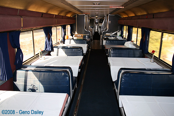 The modern "restaurant on rails" of the Superliner II Diner! |