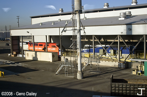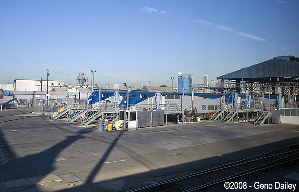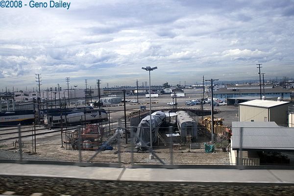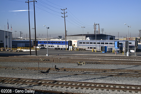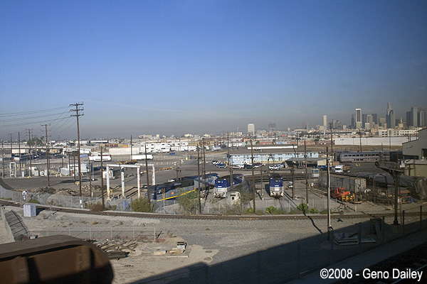 Once leaving Los Angeles, the trains pass through the 8th Street Yard complex and maintenance shops.