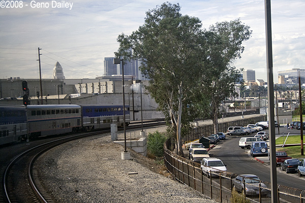 Making the turn into Los Angeles Union Station. |