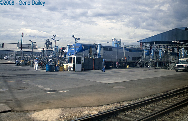 Seen here is P42 #141 getting serviced. All of the yard photos were taken from the window of the train. |