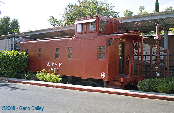 Former Santa Fe caboose #1869, part of the station facilities. |