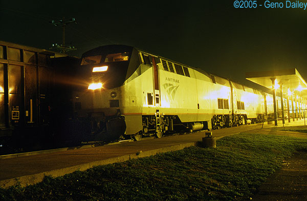 ![]() Amtrak's Lake Shore Limited having just arrived at Buffalo-Depew Station running 41 minutes late at 12:28am - October 28th, 2005 |