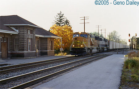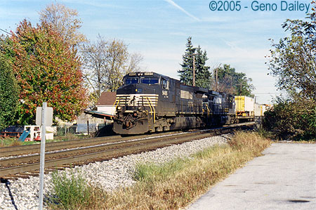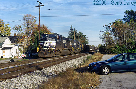 Norfolk Southern Train #233 comes through with GE C40-9W #9485 on the lead. This line is the Ex-Nickel Plate line that runs from Chicago to Buffalo, through Fostoria, it is Double Track but most of this line is single track with passing sidings. |
