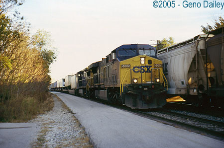 BNSF SD70MAC #9862 leads this CSX Train heading East. |