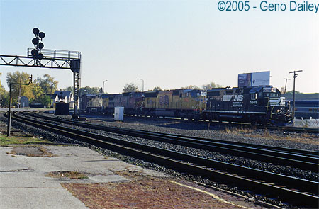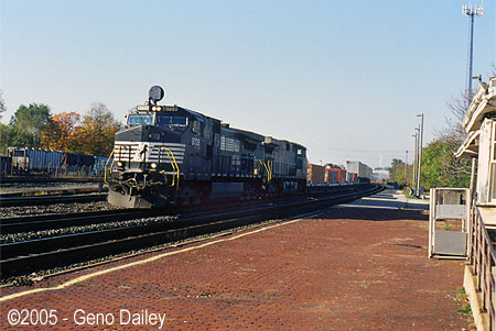 Eastbound NS Train 20T heads through Elkhart with C40-9W #9554 at 9:57am. |