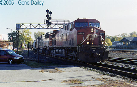CP Rail operates several trains in this area on NS, note this one with AC4400CW #9549. NS assigns symbol 33T to this train. |