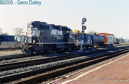 This westbound Manifest enters the yard with a freshly painted NS GP38-3 (GP38 Rebuild) #5609. |