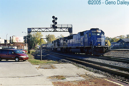 NS Train #39J heads West with SD70 #2577 on the lead. These units were the last ones to be painted in Conrail Paint, having been ordered by and numbered for NS though painted for Conrail. |