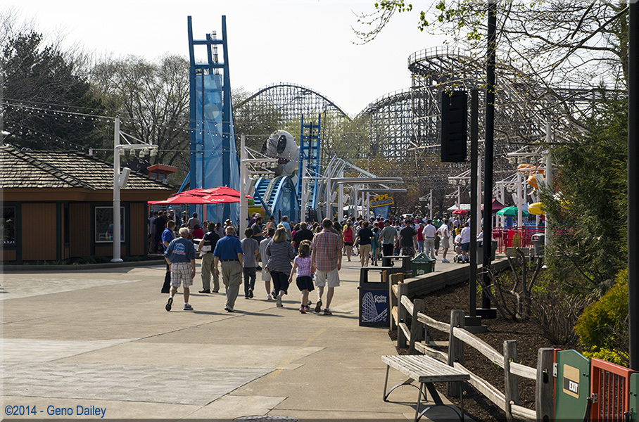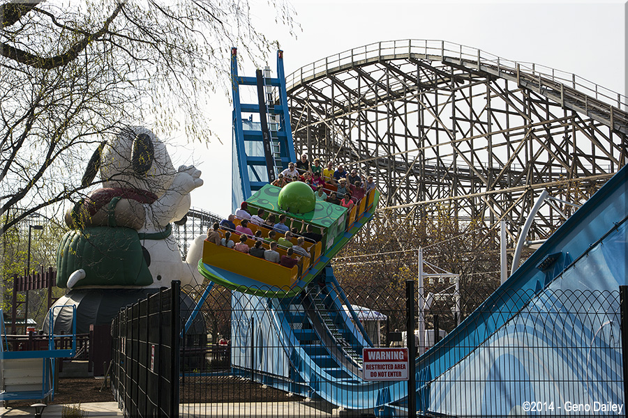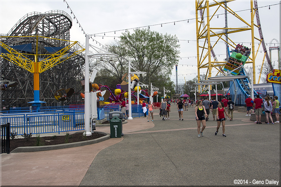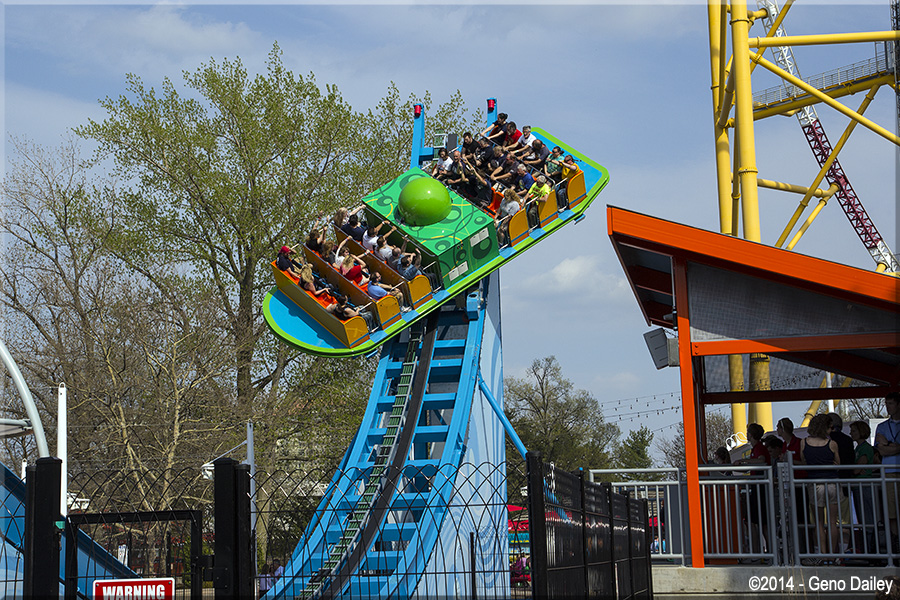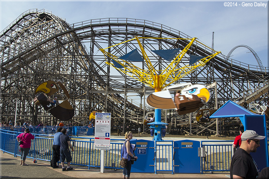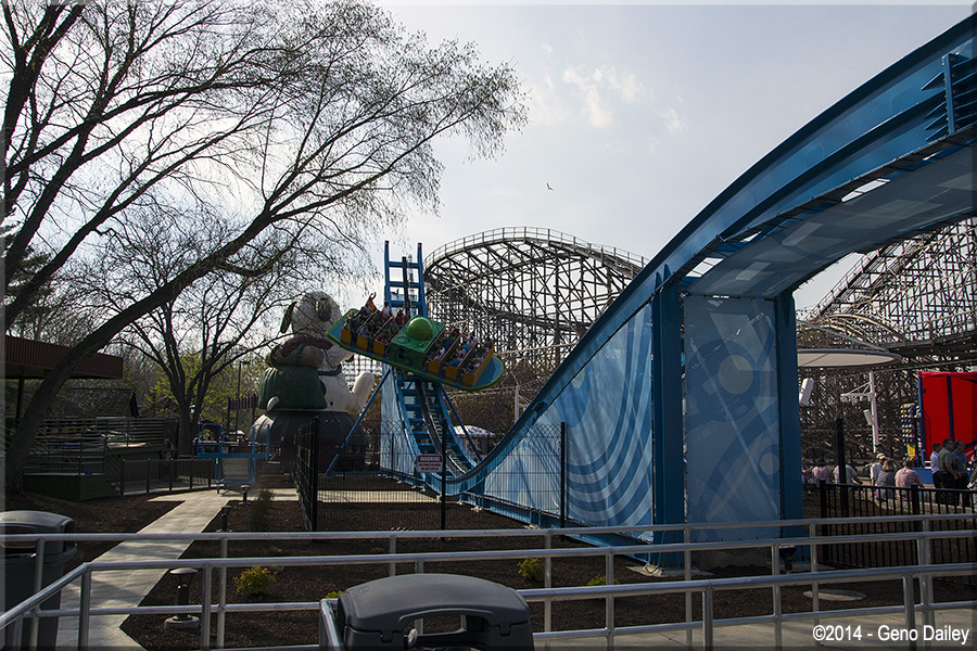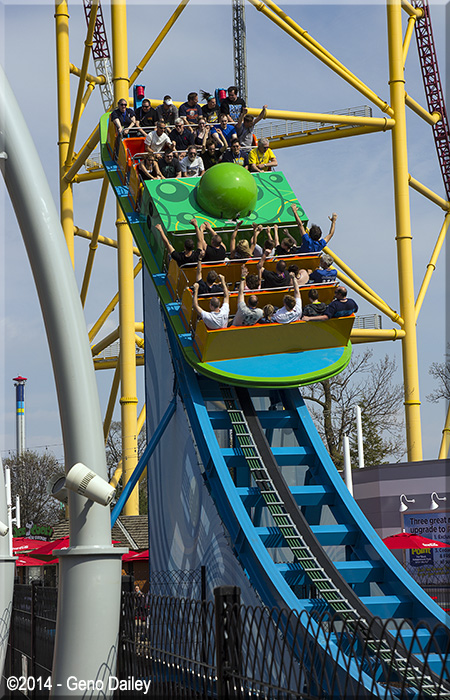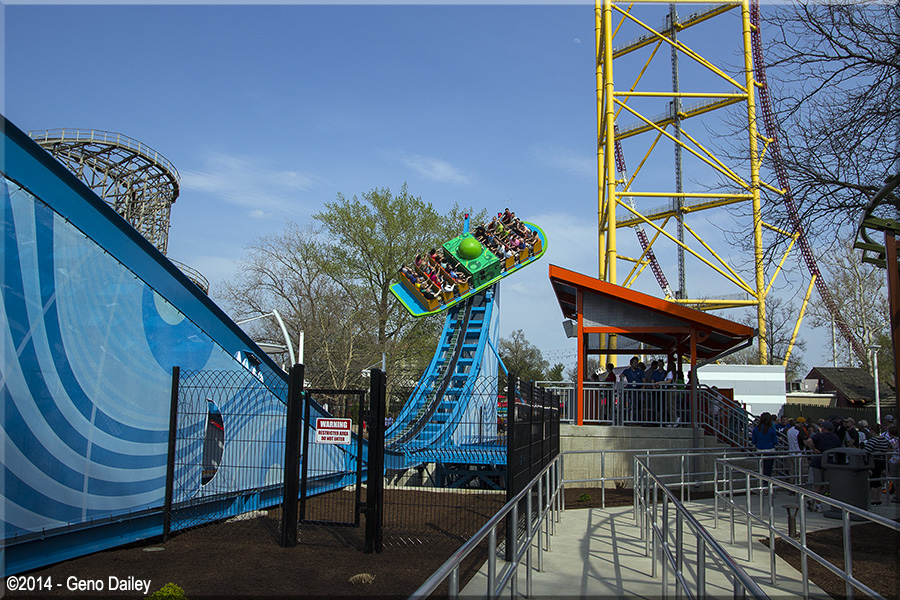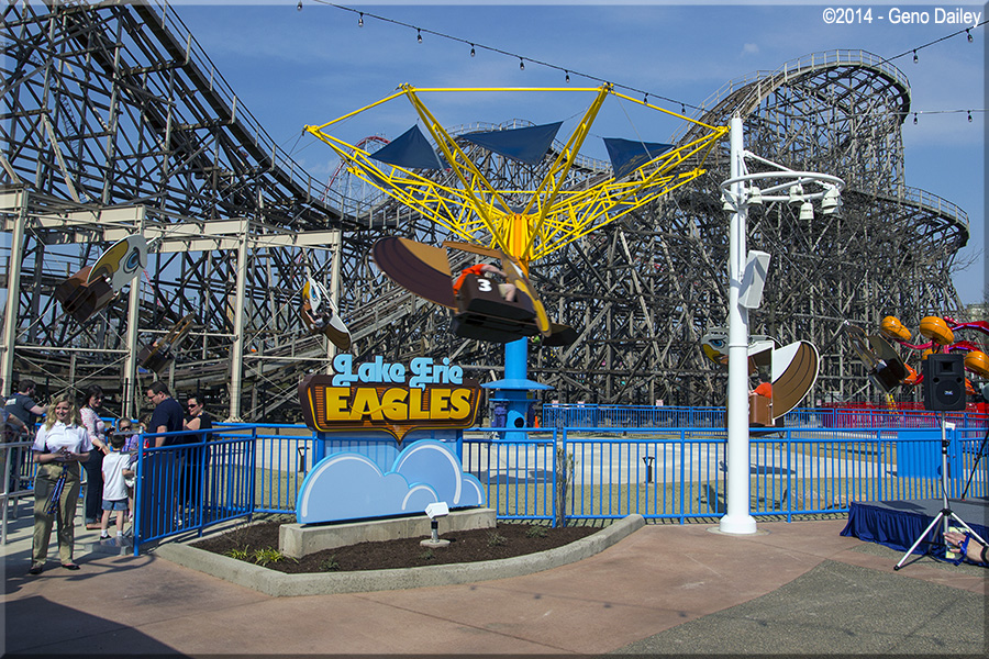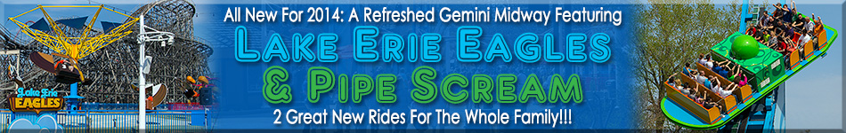 For 2014, Cedar Point opened two new family friendly rides in an area of the park that was revamped for the new rides. It's called the Gemini Midway,and its located next to the Gemini twin-racing coaster. The new rides are "Pipe Scream" which is a ride that consists of a vehicle you sit upright in, that then runs along a piece of track and spins you around while moving! The other ride is called "Lake Erie Eagles" which is a spinning ride that each ride vehicle has a rudder that you can move back and forth and it allows the ride vehicle to twist while spinning! Both of these rides were a lot of fun! I had the privilege of attending Media Day back in May 2014 so I had the chance to sample both rides then and I will say they are a lot of fun! Included here are photos of these two rides taken mostly on Media Day back in May 2014 but since they were new for this year, I wanted to include them here. Enjoy...