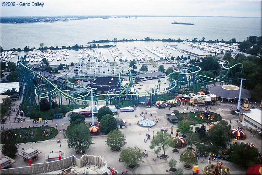 | This 2001 view of the ride shows its signature "Cobra-Roll" which provides 2 of the ride's 6 inversions!!! |