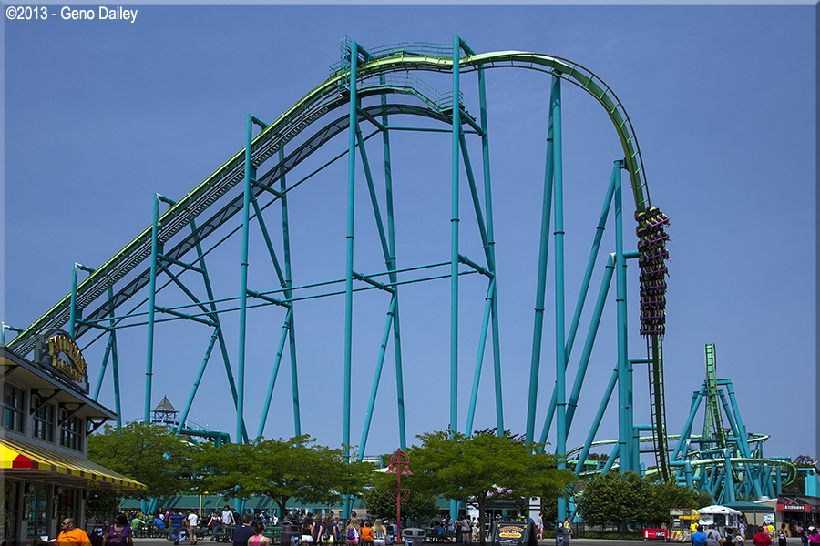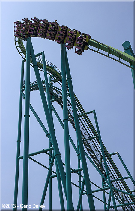 | This 2013 view of Raptor's 137ft tall lift hill shows this is one very impressive coaster! |