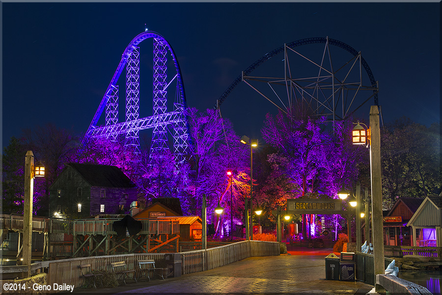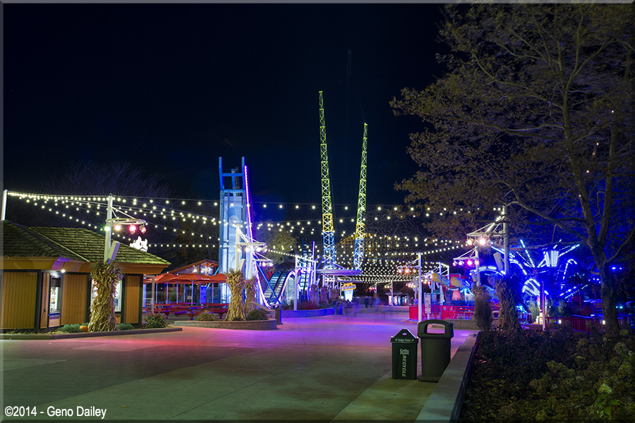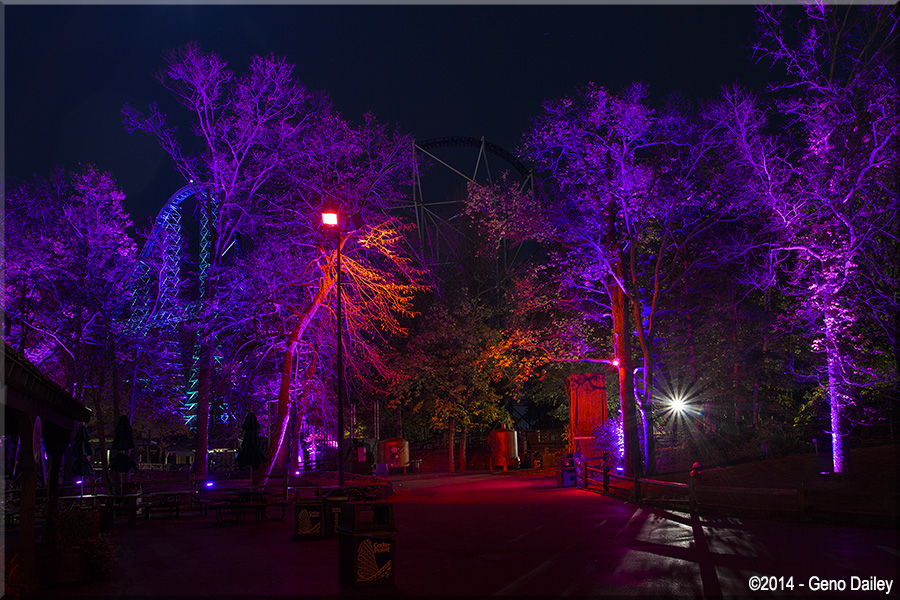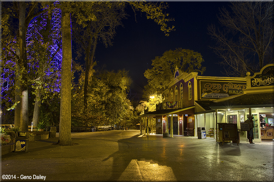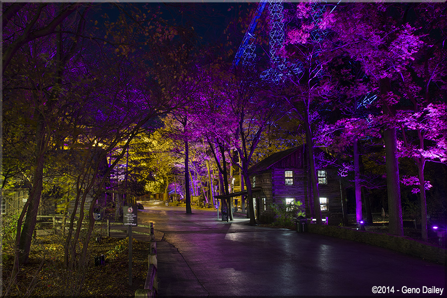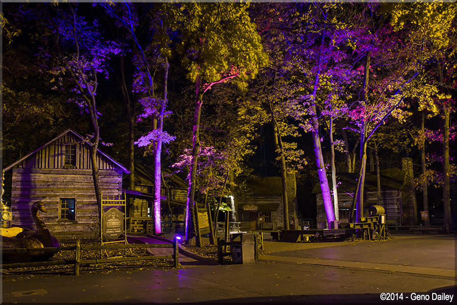 and "screamsters" along the Frontier Trail. The night I was here to get these photos, the Halloween events had ended for the season but the lighting was