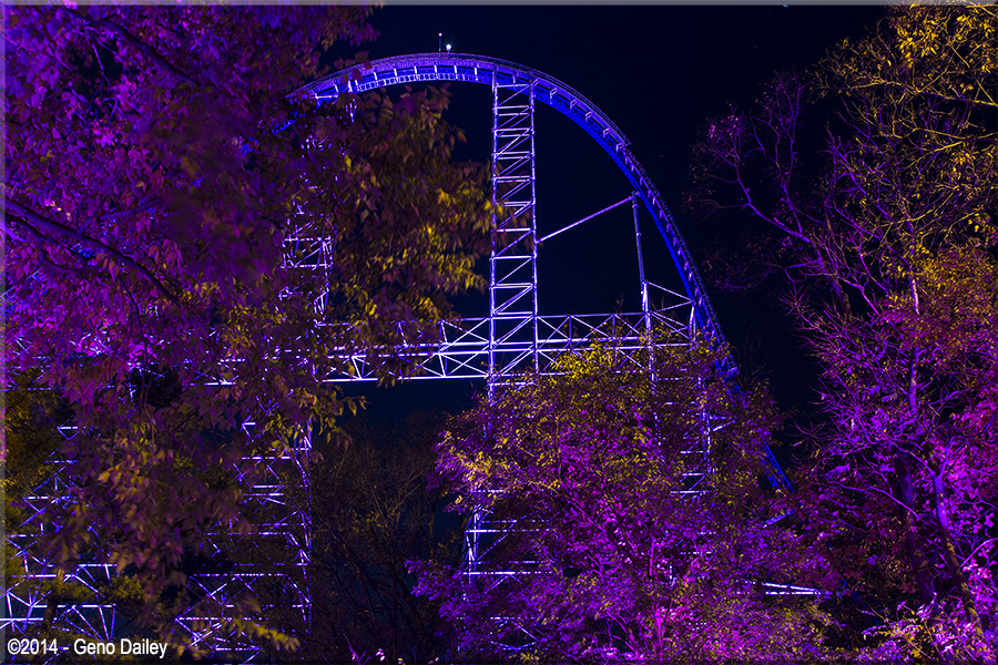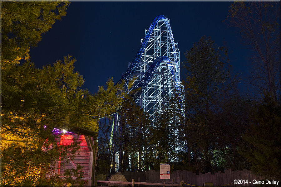 Now at the Frontiertown end of the Frontier Trail, the lighting in those trees made for some very interesting photos and Millennium Force joined in as well!