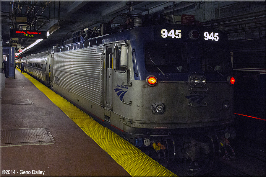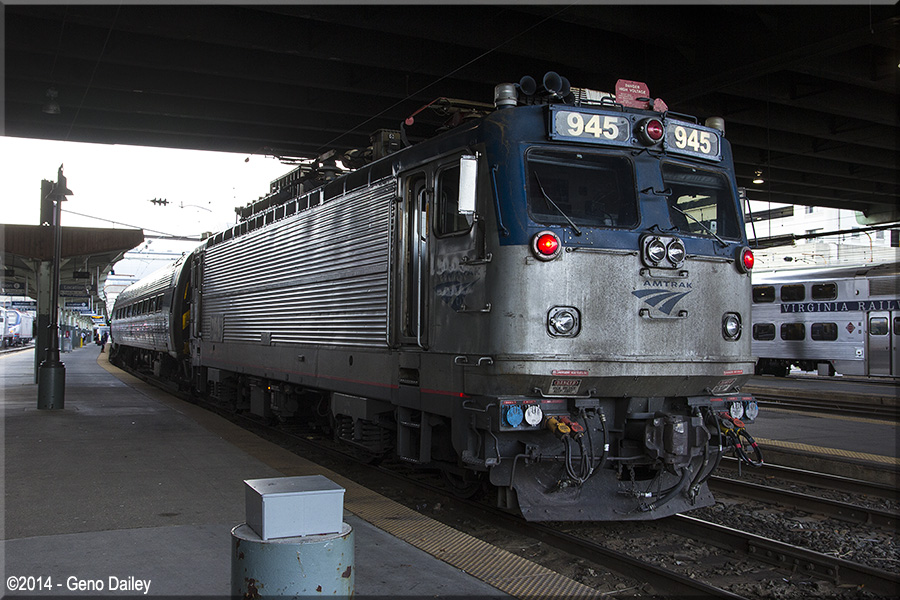 | Amtrak Train #56 - The Vermonter with AEM-7AC #945 for power as seen a few minutes before departing Washington for New York and onto Vermont! |