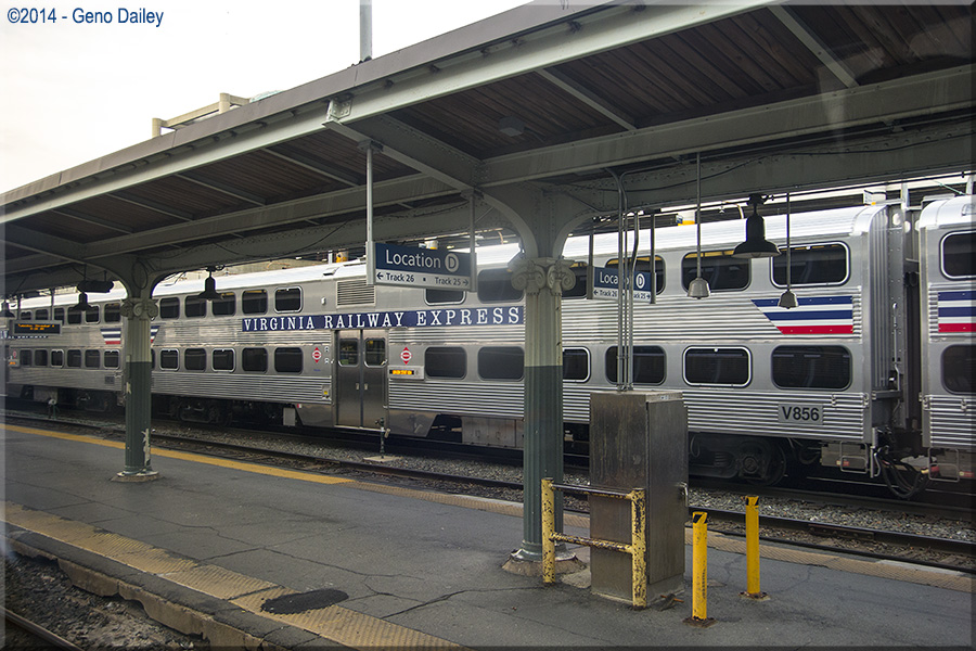 | A Virginia Railway Express commuter train at Union Station seen shortly after departing there. |