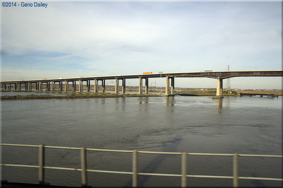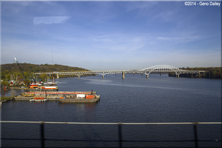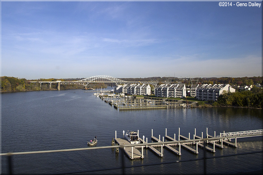 | At Havre De Grace, MD we pass over the Susquehanna River. The bridge in the background carries US Highway 40 also known as the Pulaski Highway. |