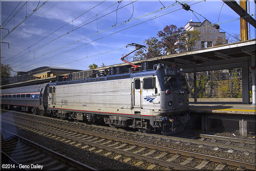 | Amtrak Keystone Service Train #643 stopped at Trenton, NJ with AEM-7AC #938 for power. |
