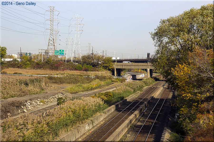 | North Bergen, NJ, closing in on the Hudson River tunnel that will bring the train into New York City with the next stop at Penn Station! The two tracks in this photo are part of the old Northern Railroad of New Jersey and today make up an active mainline that ties into the CSX River Sub north of here. Special thanks to Trainorders.com for info on this photo. |