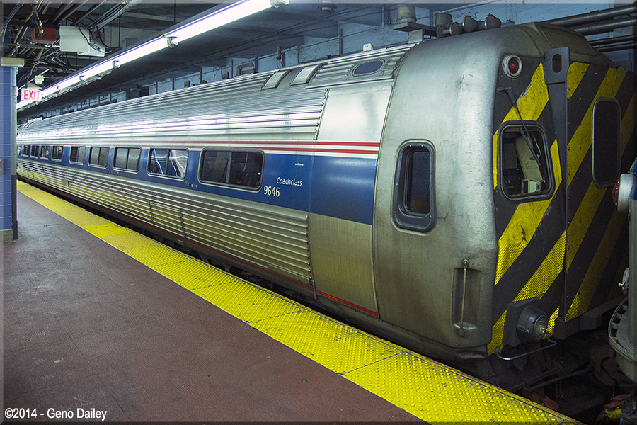 | Because this train operates in push-pull mode once it gets off the Northeast Corridor at New Haven, CT, this Control Coach is situated on one end of the train and a P42DC will be on the other end to provide power. This car is a former Budd Pennsylvania Metroliner car. |
