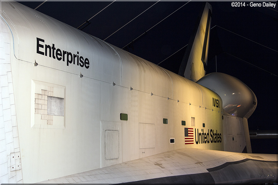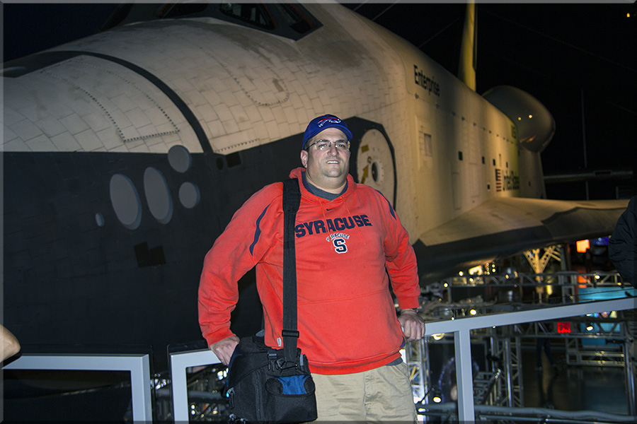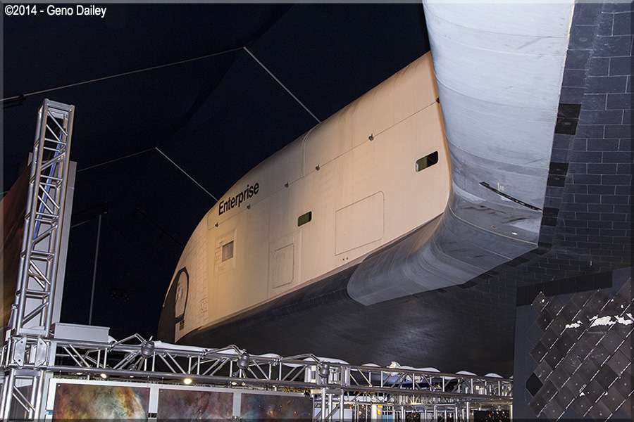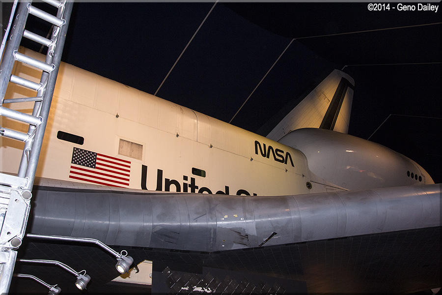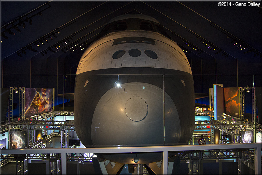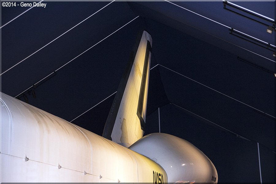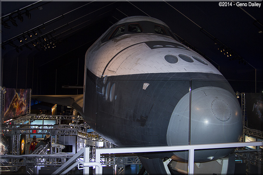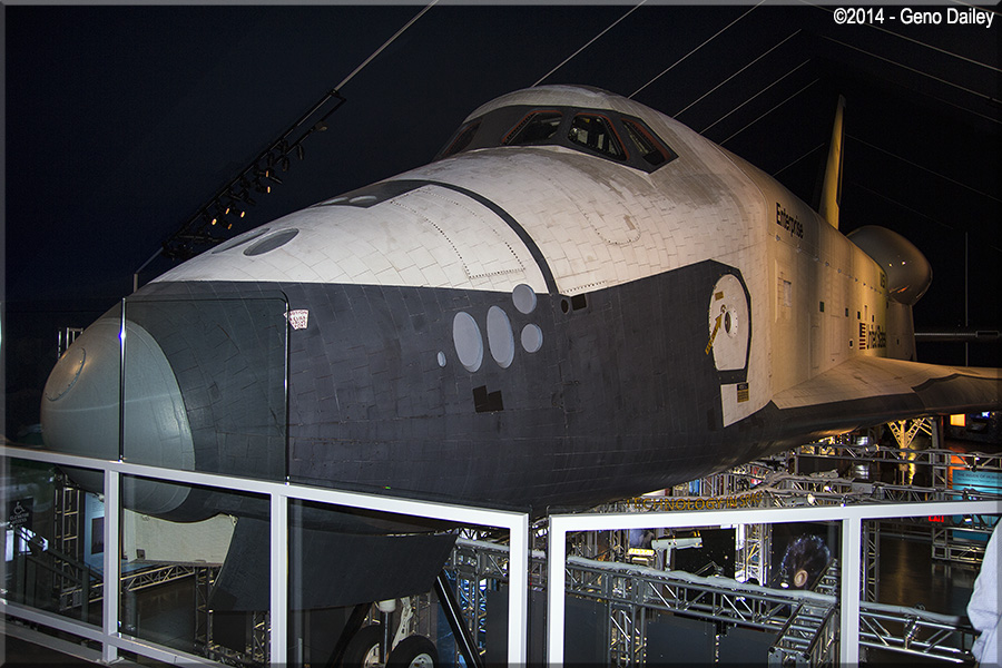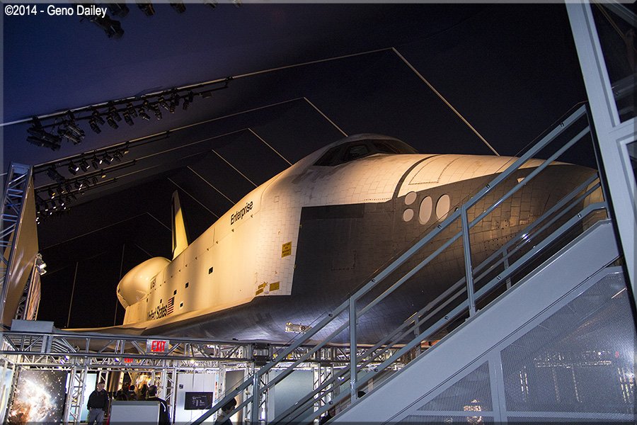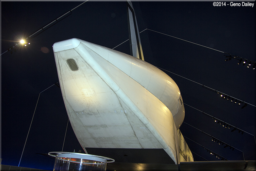 The pavilion that surrounds the shuttle was built around the shuttle when it was placed on the flight deck of the Intrepid. A good wide-angle lens