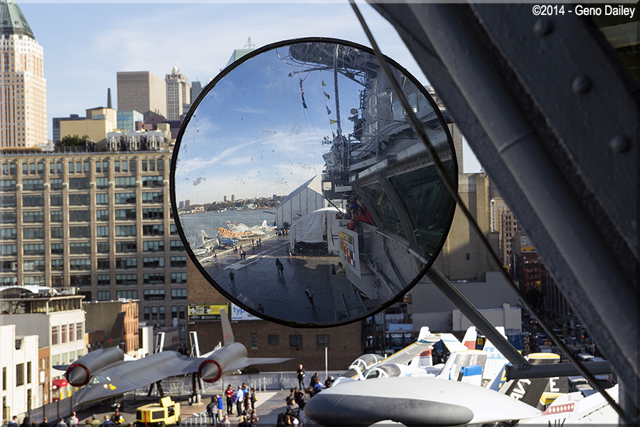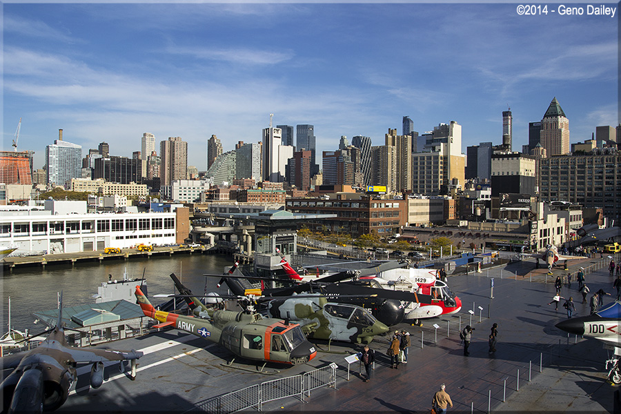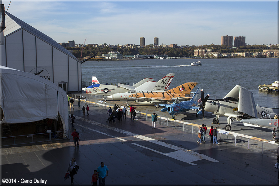 | Lots more aircraft on the flight deck of the Intrepid with the greatest city in the world, New York in the background! |