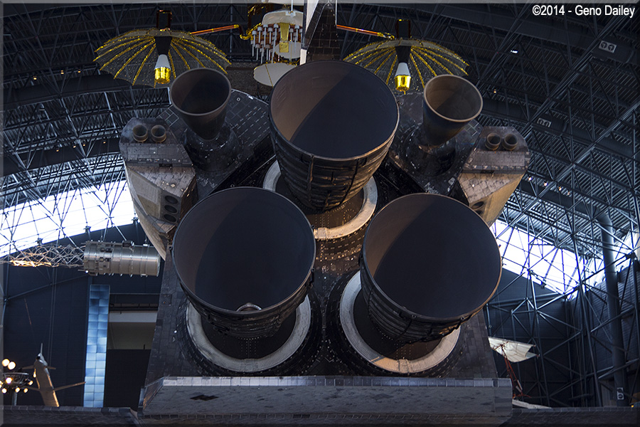 The shuttle's 3 main rocket engines! Believe it or not, they would use all the fuel in the orange external tank in just the first 8 1/2 minutes after liftoff!!!