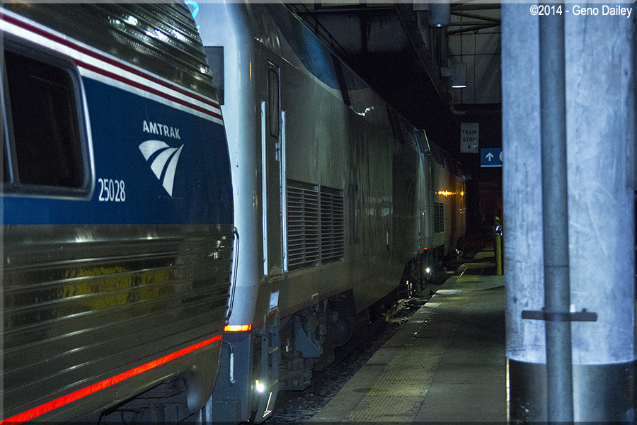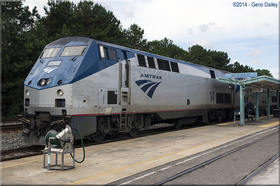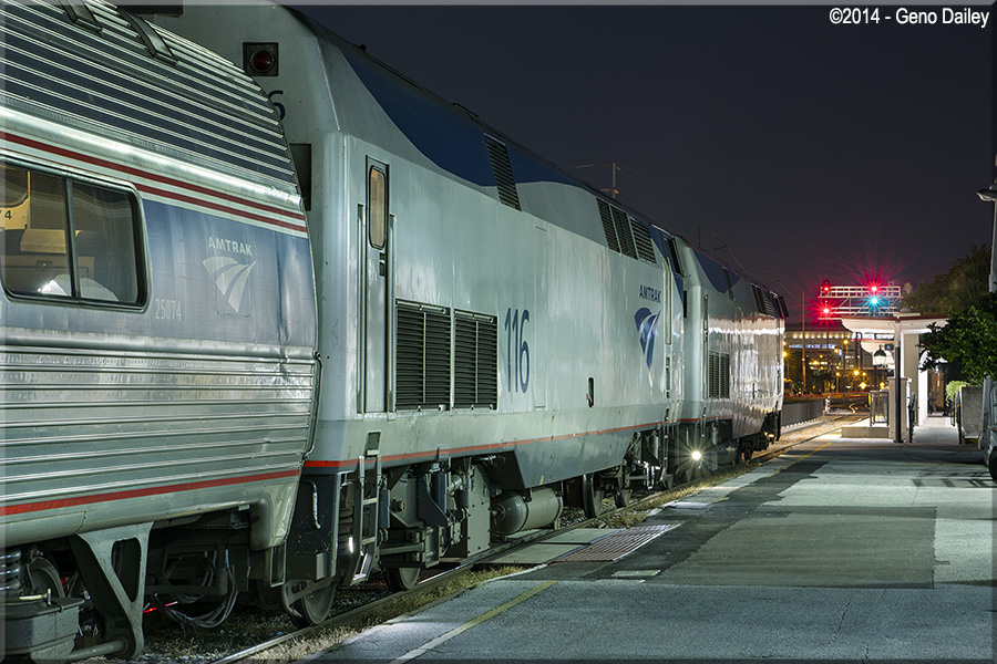 Amtrak P42DC's #14 and 112 couple onto the end of the train as they would be our power for the trip to Florida. Either an AEM-7 or ACS-64