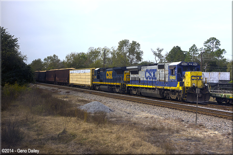 | A CSX freight waits for us to pass, lead by GE B40-8 #5948. |