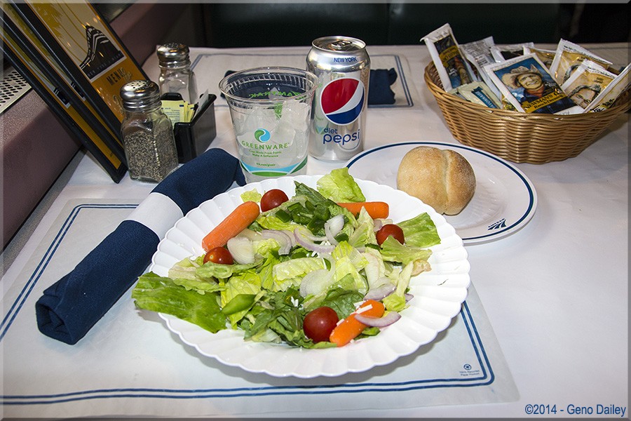 | Amtrak's new and improved Side Salad! It's a bigger salad and has more veggies in it, more good eats in the Amtrak diner!!! |