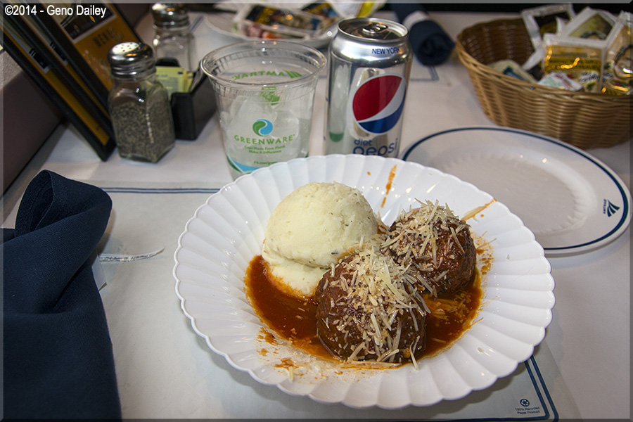 | Amtrak's Marketplace Special for lunch, Turkey Meatballs in a tomato sauce & parmesan cheese with garlic mashed potatoes! Good lunch!!! |