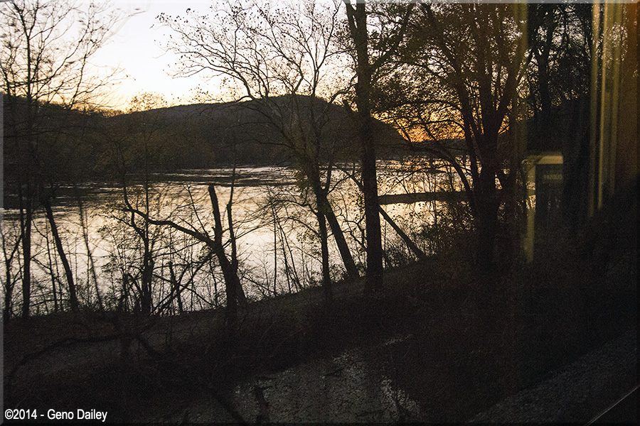| Paralleling the Potomac River heading towards Harpers Ferry, WV, now after sunset. |