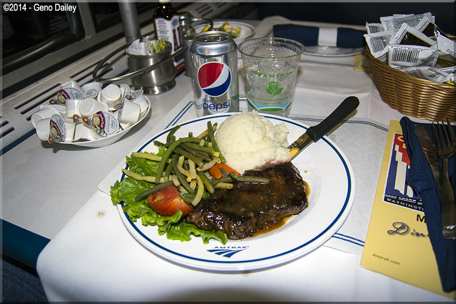 And here is Amtrak's Signature Steak with garlic mashed potatoes and a vegetable medley. Yes, I'd eat several steaks on this trip but I'm