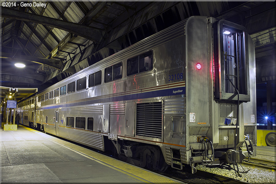 | The end of our train which had a deadheading Superliner II Sleeping Car, this time, car #32108. |