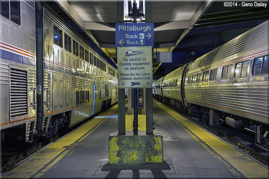 with this one being our train under the covered platform at the Pittsburgh Amtrak Station.