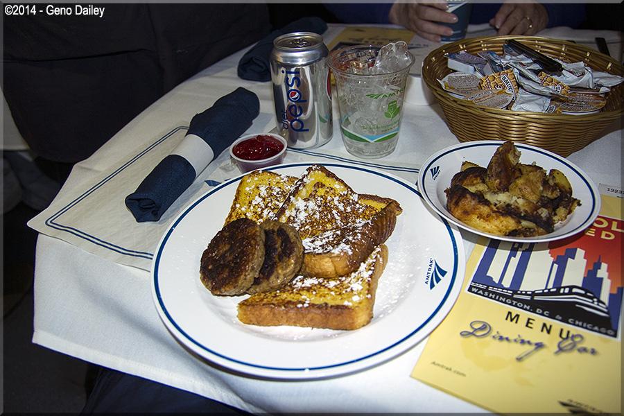 | The next morning, I would enjoy my Railroad French Toast with chicken apple sausage patties and home fries with a Diet Pepsi for breakfast!!! |