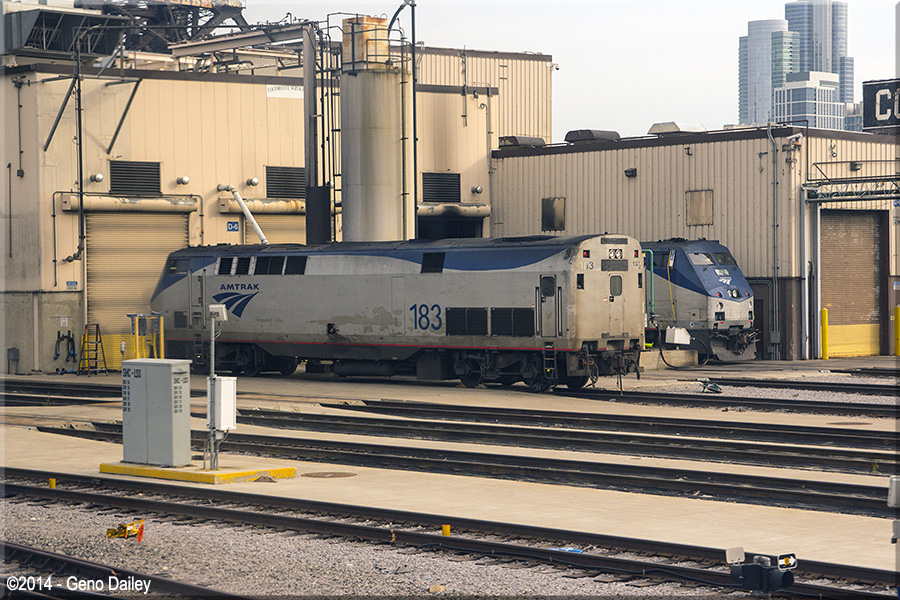 | GE P42DC's #183 and 62 sit outside the Chicago Locomotive Shop. |