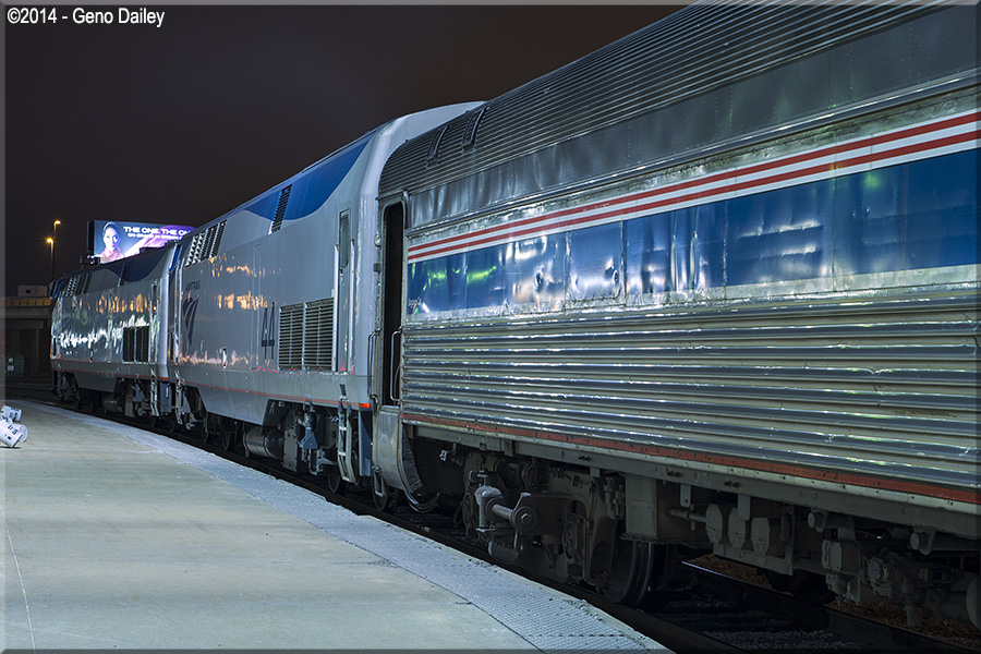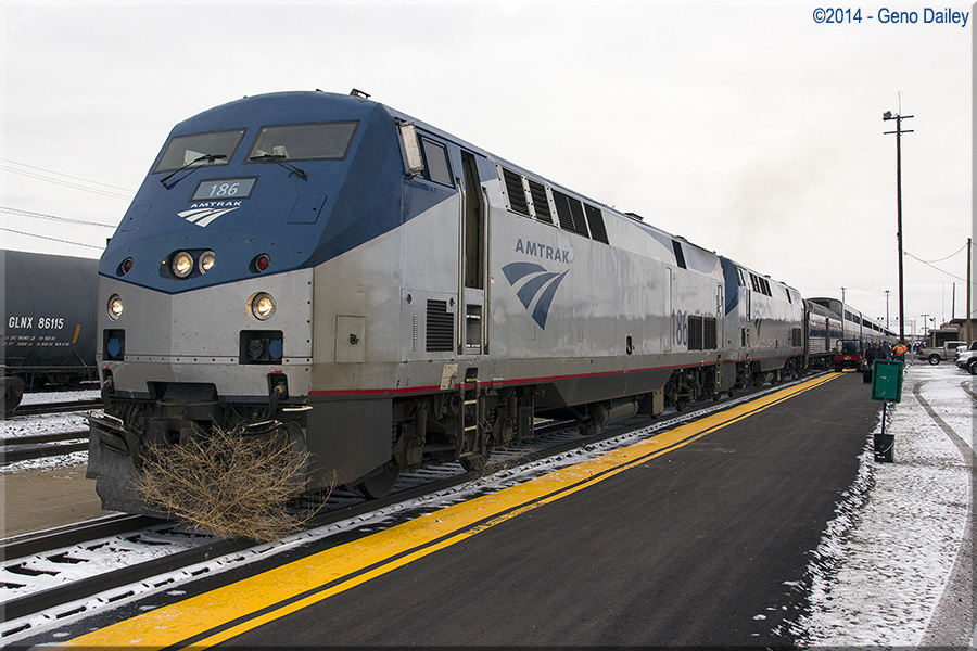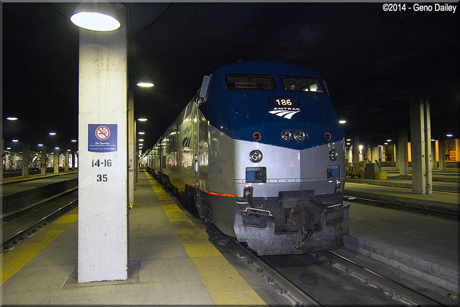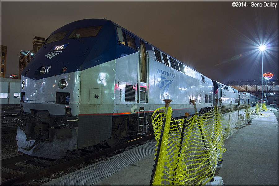 | Seen just before departing Chicago Union Station, Train #3 - The Southwest Chief has GE P42DC #186 as our leader with #44 trailing. |