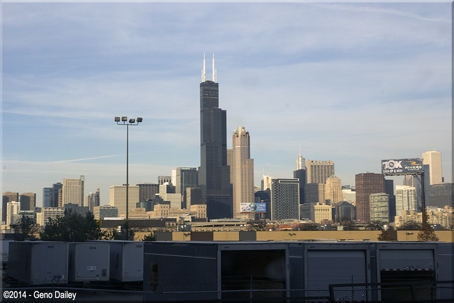 | Now heading out of Chicago for points west, we get a great view of the mighty Willis Tower! |
