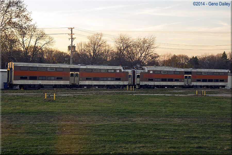 | A couple former Illinois Central bi-level electric Commuter Coaches at Mendota, IL. |