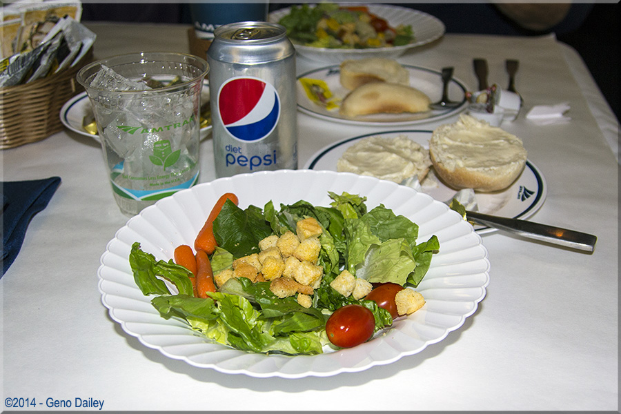 | Time for dinner on the Southwest Chief. This is Amtrak's new and improved side salad, tasty!!! |