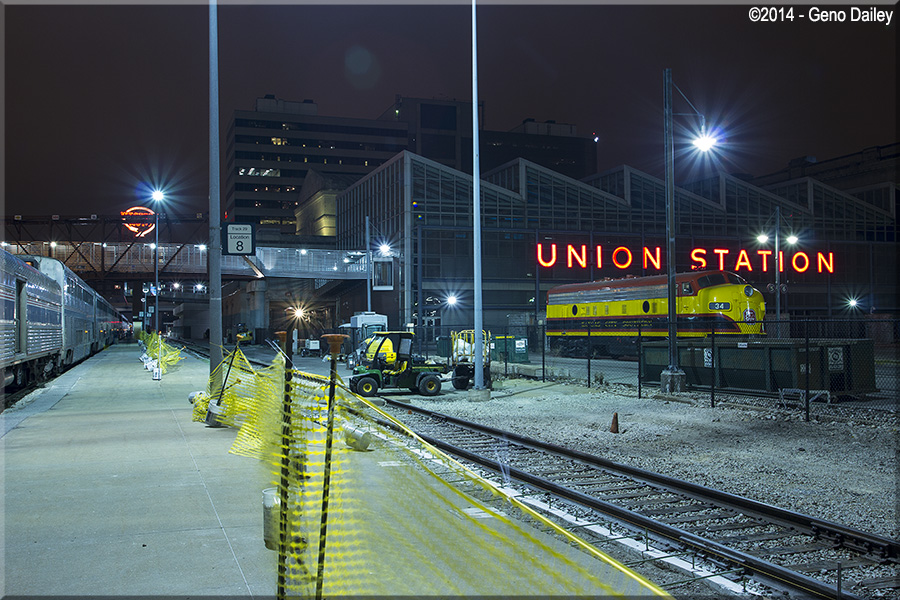 | Part of the platform was under construction, hence the snow fencing on certain parts of it. I like that Kansas City Southern F-Unit!!! |