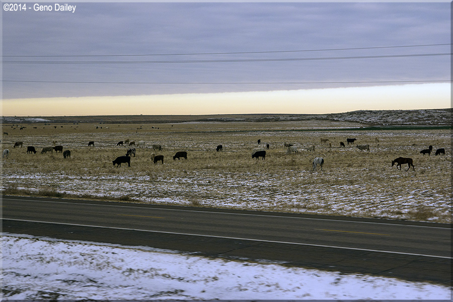 | Well, it can't be too cold, the cows and horses in this photo don't look like they're complaining! |
