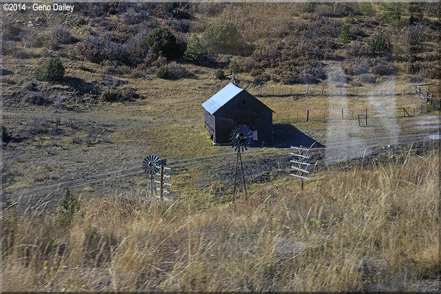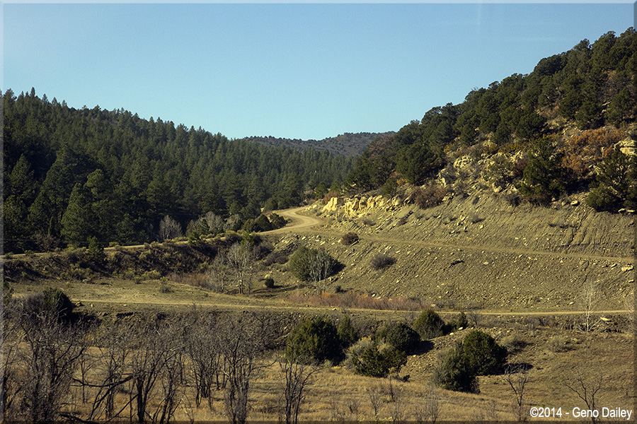 | Now at the Dick Wooton Ranch, the terrain is getting hilly as we get closer to Raton Pass. We're now in the area of the old Santa Fe Trail. |