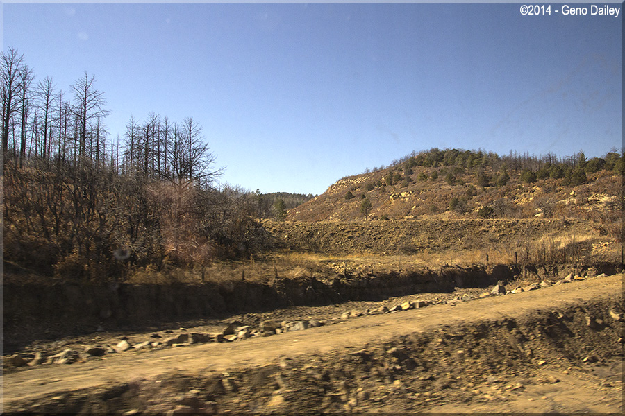 | Now over Raton Pass, heading downhill and closing in on our next stop of Raton, NM. |