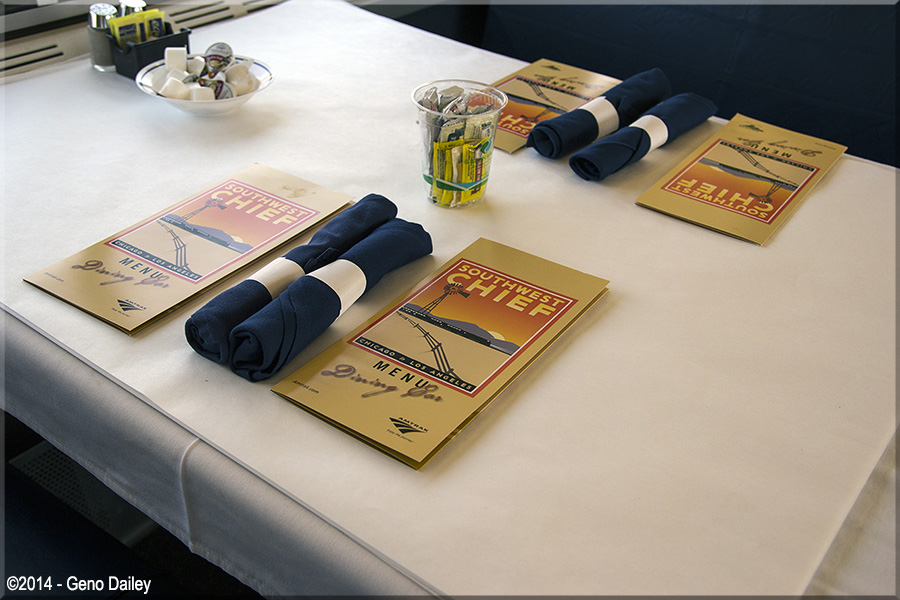 | A place setting in the Dining Car on the Southwest Chief. These seem to be a little different on each route which makes them interesting to photograph! |