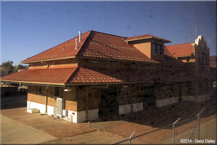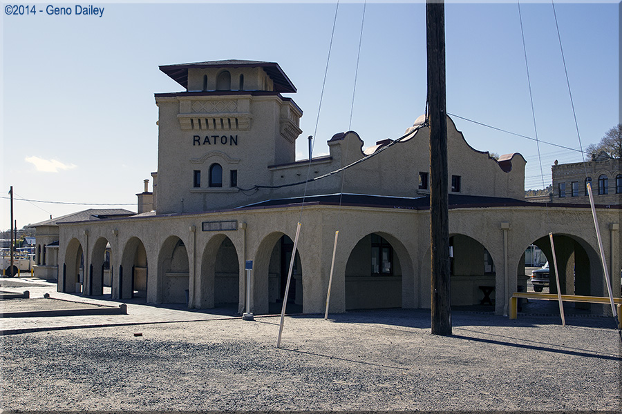The Amtrak Station at Raton, NM, a building of Santa Fe heritage. The station itself is not staffed but assistance in boarding the train is provided by
