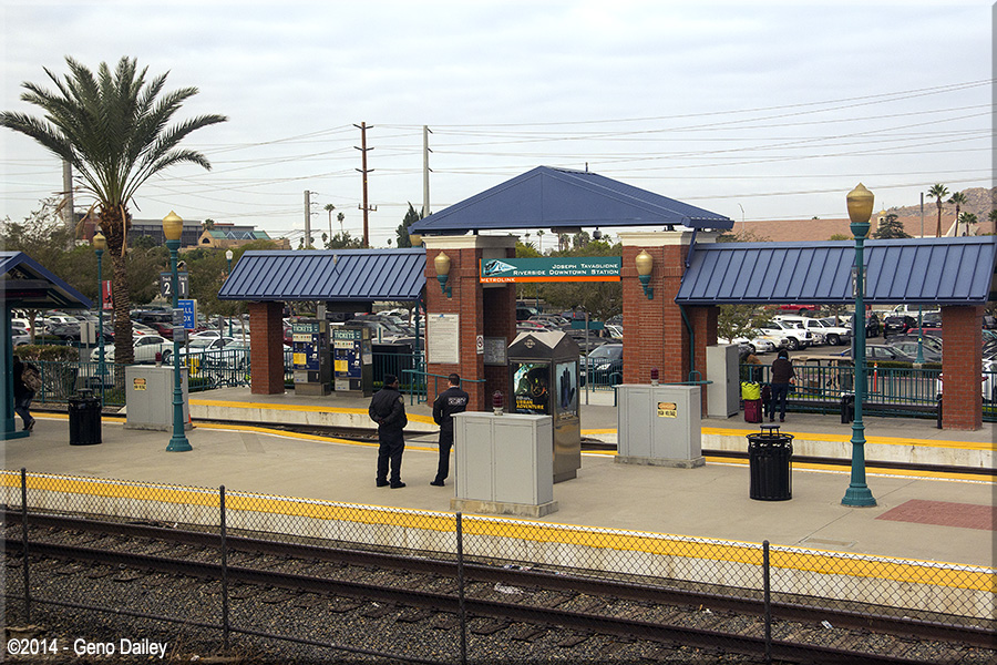 | Now arriving at Riverside, CA. Amtrak uses the Metrolink Station at Riverside. |